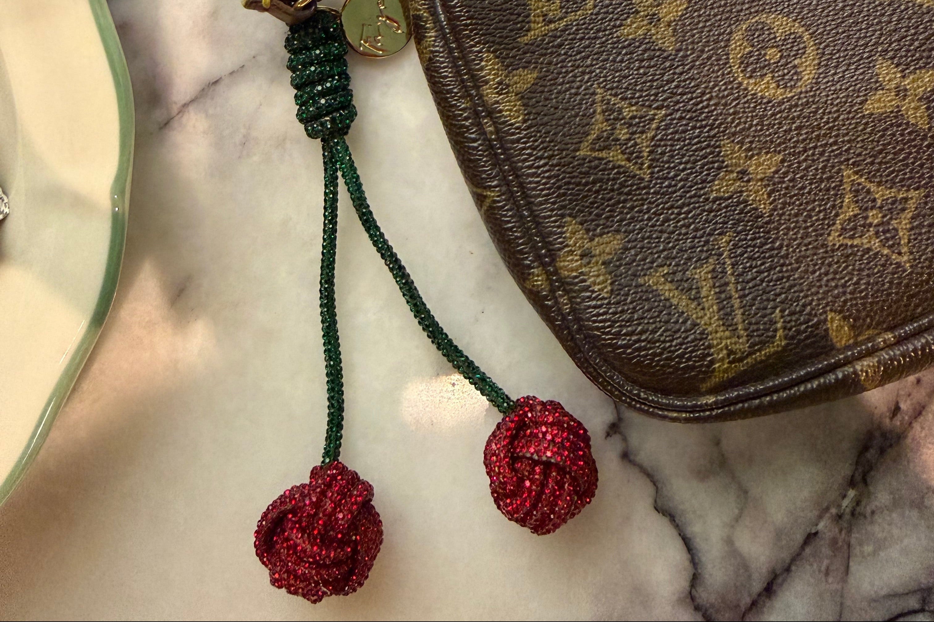 Our Cherry bag charm is the perfect addition to your charm collection to add that pop !